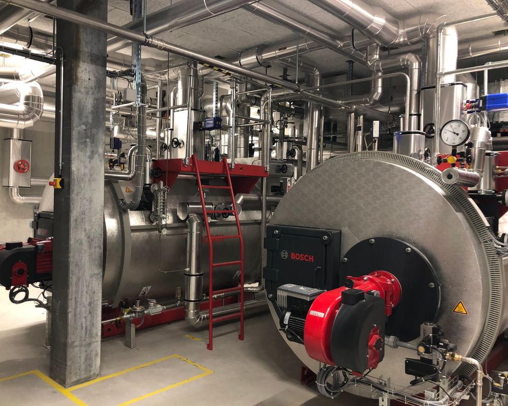 Das Gebäude wird mittels Fernwärme und Fernkälte versorgt. Die Prozesskälte auf niedrigerem Temperaturniveau wird im Gebäude klimafreundlich mittels HFO erzeugt. Im Gebäude selbst wurde ein ausgedehntes Abwärmenutzungskonzept umgesetzt. Als Quellen dafür dienen: Dampfanlage / Abwasser WRG / Kälteerzeugung. Ein weiteres Highlight ist die Sterilisatoren Rückkühlung mittels Freecooling – clever, umweltschonend und wirtschaftlich. Reindampf für Sterilisatoren: Die Dampferzeugung erfolgt mittels redundanten Dampferzeugern. Auf den Sterilisatoren selbst sind Dampf Umformer platziert, welche den EN/SN 285 konformen Reindampf erzeugen.